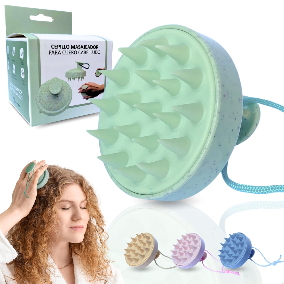 Cepillos masajeadores cuero cabelludo - verde