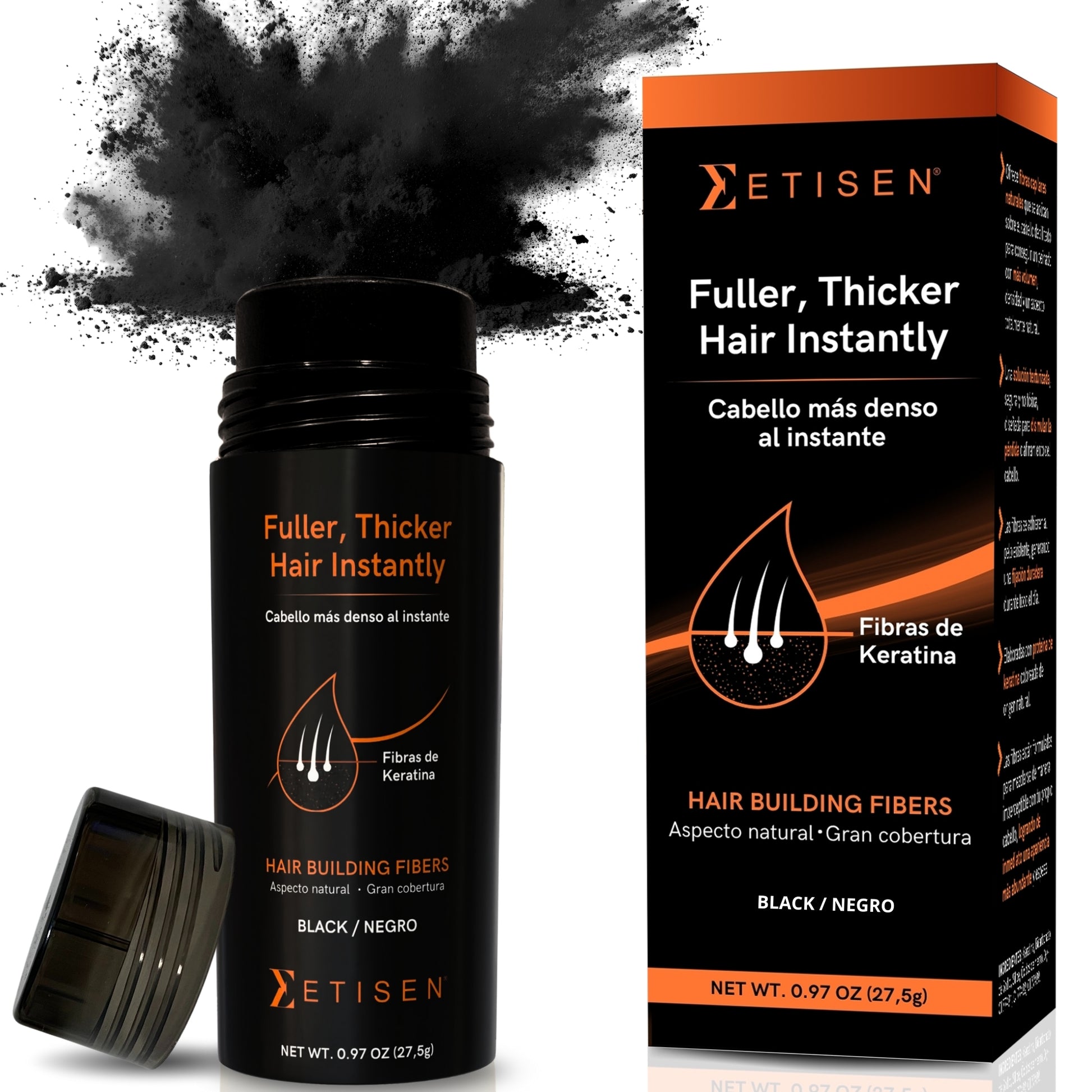 Las fibras capilares ETISEN ofrecen una solución rápida para dar más densidad y volumen al cabello. Sus microfibras se adhieren al instante, cubriendo zonas claras con un acabado natural y duradero.