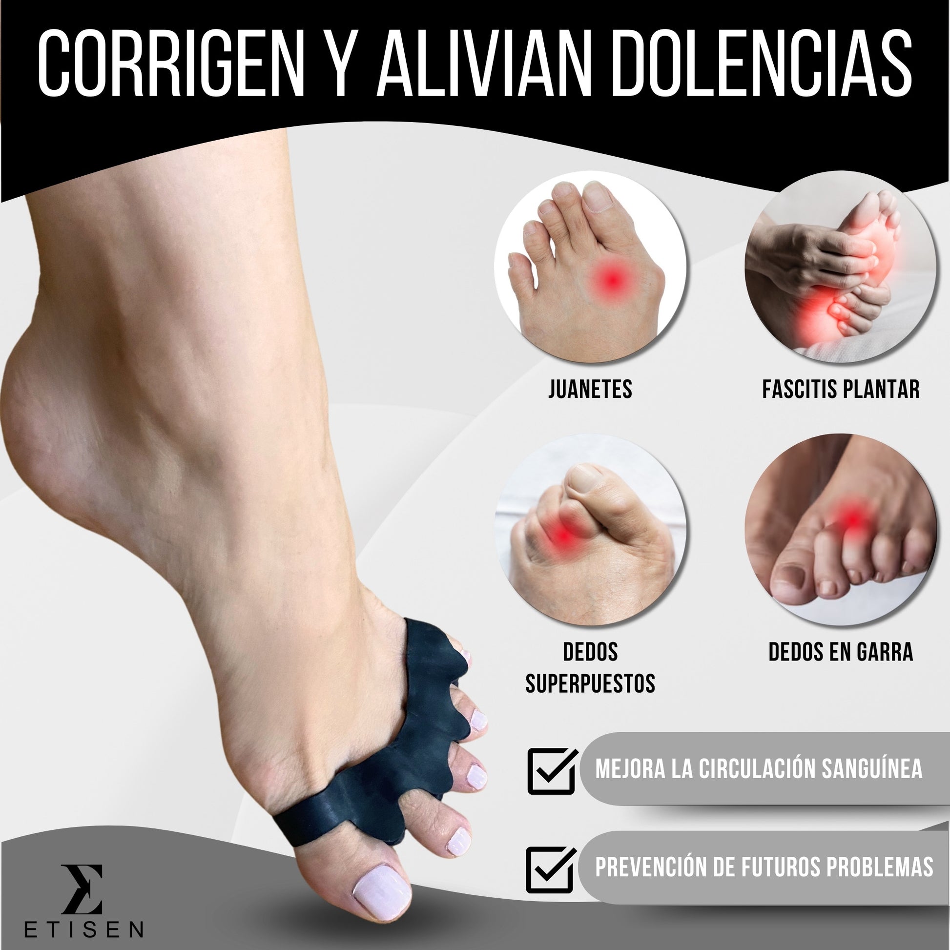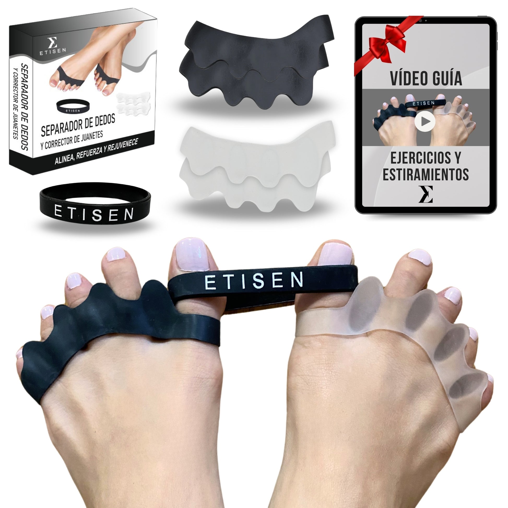 El separador de dedos ETISEN te ofrece comodidad y alivio incluso con calzado ancho o durante el deporte. Siente ese confort revitalizante todo el día, cuidando y alineando tus pies para un bienestar como nunca antes.